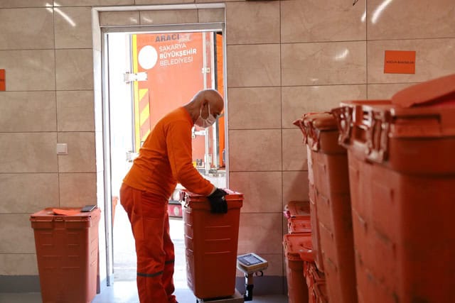 SAKARYA- Sakarya Büyükşehir Belediyesi, örnek çevre politikası kapsamında sürdürdüğü atık toplama çalışmalarını hızla sürdürüyor. 16 ilçedeki sağlık kuruluşlarından uygun koşullarda toplanan aylık 130 ton tıbbi atık, lisanslı araçlarla Tıbbi Atık Sterilizasyon tesisine getirilerek güvenli bir şekilde bertaraf ediyor. 16 ilçedeki sağlık kuruluşlarından günlük olarak toplanan atıklar basınçlı buhar, parçalama ve kimyasal-biyolojik indikasyon eşliğinde bertaraf ediliyor.
