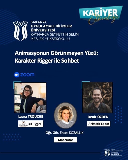 SUBÜ Kaynarca Seyfettin Selim Meslek Yüksekokulu Bilgisayar Destekli Tasarım ve Animasyon Programı tarafından çevrimiçi söyleşi düzenlendi. Söyleşide Disney Animasyon Stüdyoları’nda çekilen ‘Moana 2’ filminde görev alan ve animasyonlara doğasına uygun hareket etme kabiliyeti veren Laura Trouche ile Animasyon Sanatçısı Deniz Özden konuşmacı olarak katıldı. Moderatörlüğünü Öğretim Görevlisi Entes Kozallık’ın üstlendiği söyleşide; animasyon üretim süreçleri, teknik uygulamalar, ekip çalışması ve uluslararası sektörel deneyimler ele alındı. Türkiye ile küresel animasyon sektörleri arasındaki farklara değinilen etkinlikte ayrıca yaratıcı portföy oluşturma, kariyer planlama, animasyon alanında öne çıkma stratejileri ve sektörel fırsatlara da değinildi. Sektördeki tecrübelerini katılımcılarla paylaşan Trouche ve Özden, animasyonun disiplinlerarası ve sürekli gelişim gerektiren bir alan olduğuna dikkat çekerek; öğrenme sürecine açıklık, iş birliği kültürü ve yaratıcılığın mesleki başarıdaki önemine vurgu yaptılar. Öğrencilerin kariyer gelişimlerine katkı sunmayı amaçlayan söyleşi programı, soru-cevap bölümünün ardından tamamlandı.